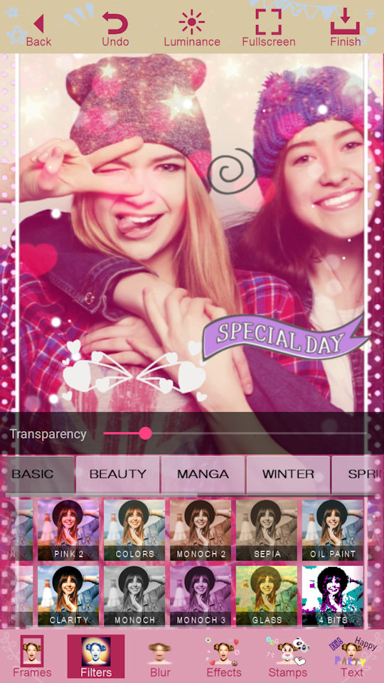 • Filters, Frames, Effects, Blurs, Text and More than 700 Stamps